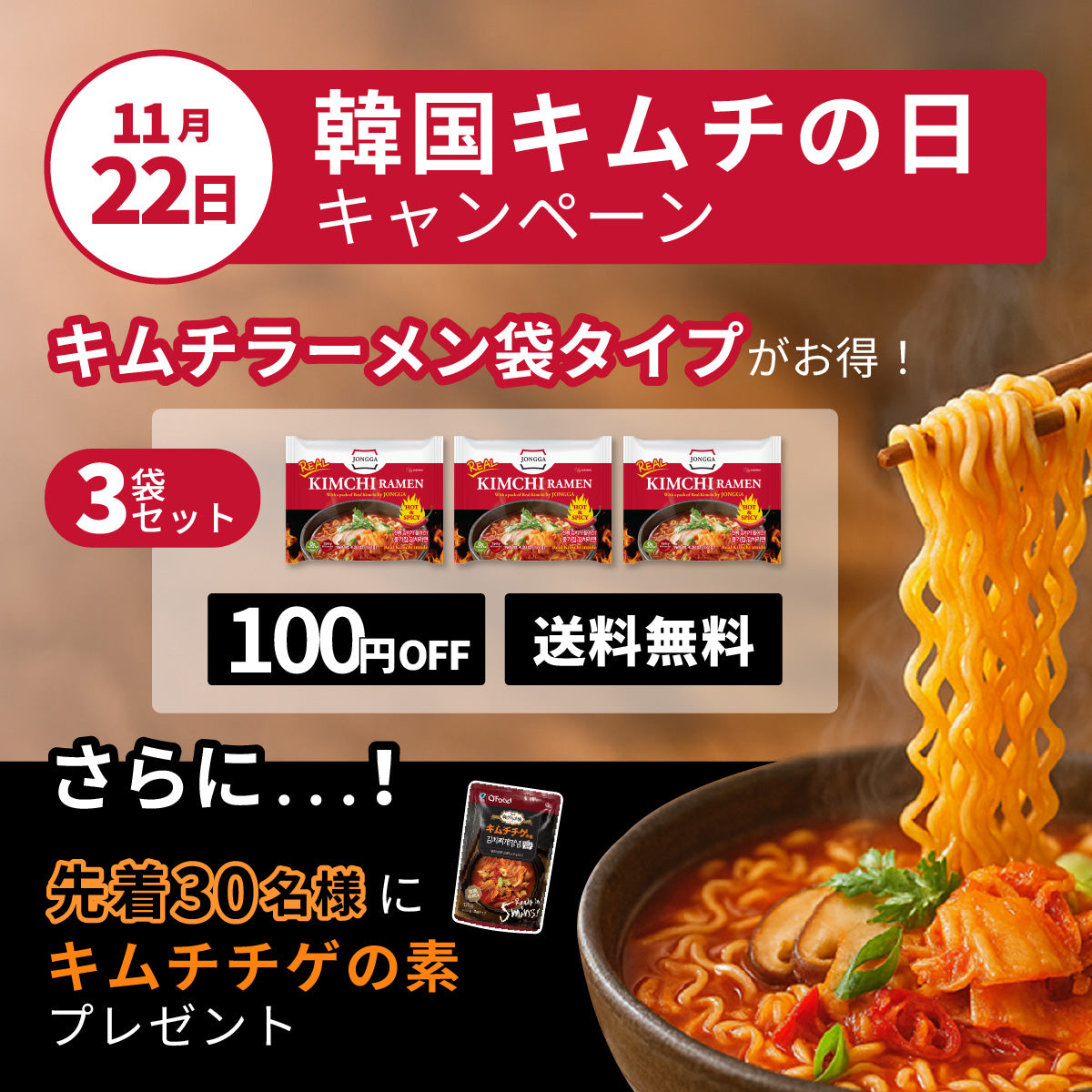 【送料無料】\1食あたり460円/宗家 キムチラーメン 122g×3袋|jongga 即席麺 時短 袋麺